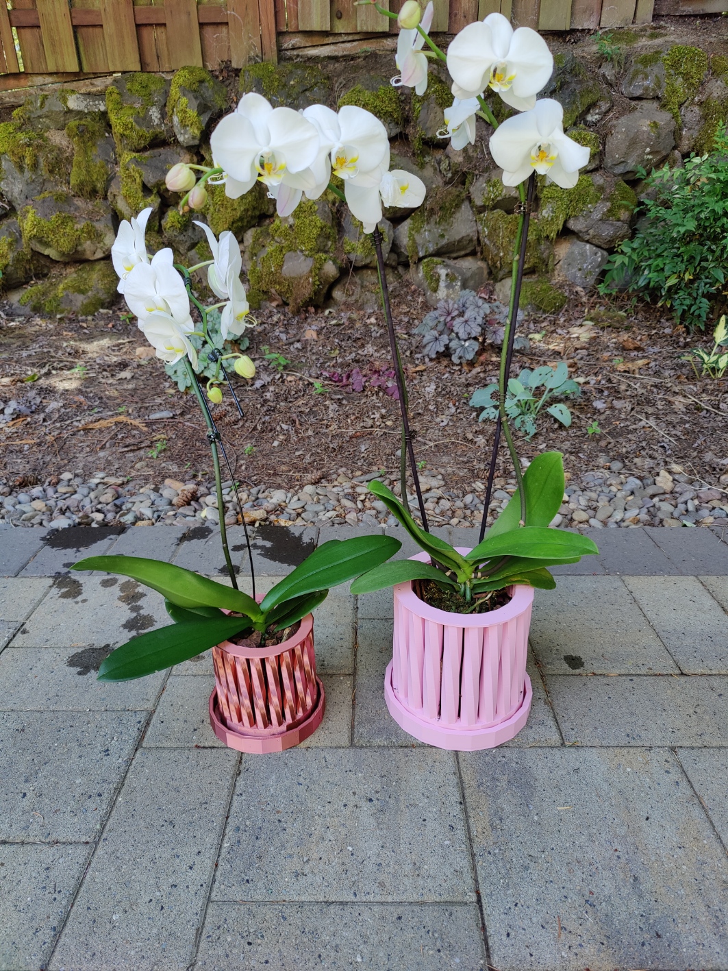 Here is a great example of a new customer request. I was asking on another forum about what to plant in a fairly unremarkable brown planter that a customer returned. I received so many great ideas from the community, which I’ll detail in another post, but it lead to a conversation about orchid planters. The summary was basically, they are all boring and expensive! So I set out to put my own stamp on them. I made a design using Greek pillars. But it also was a bit plain. So I added a twist, literally, and the rest is history to be made.