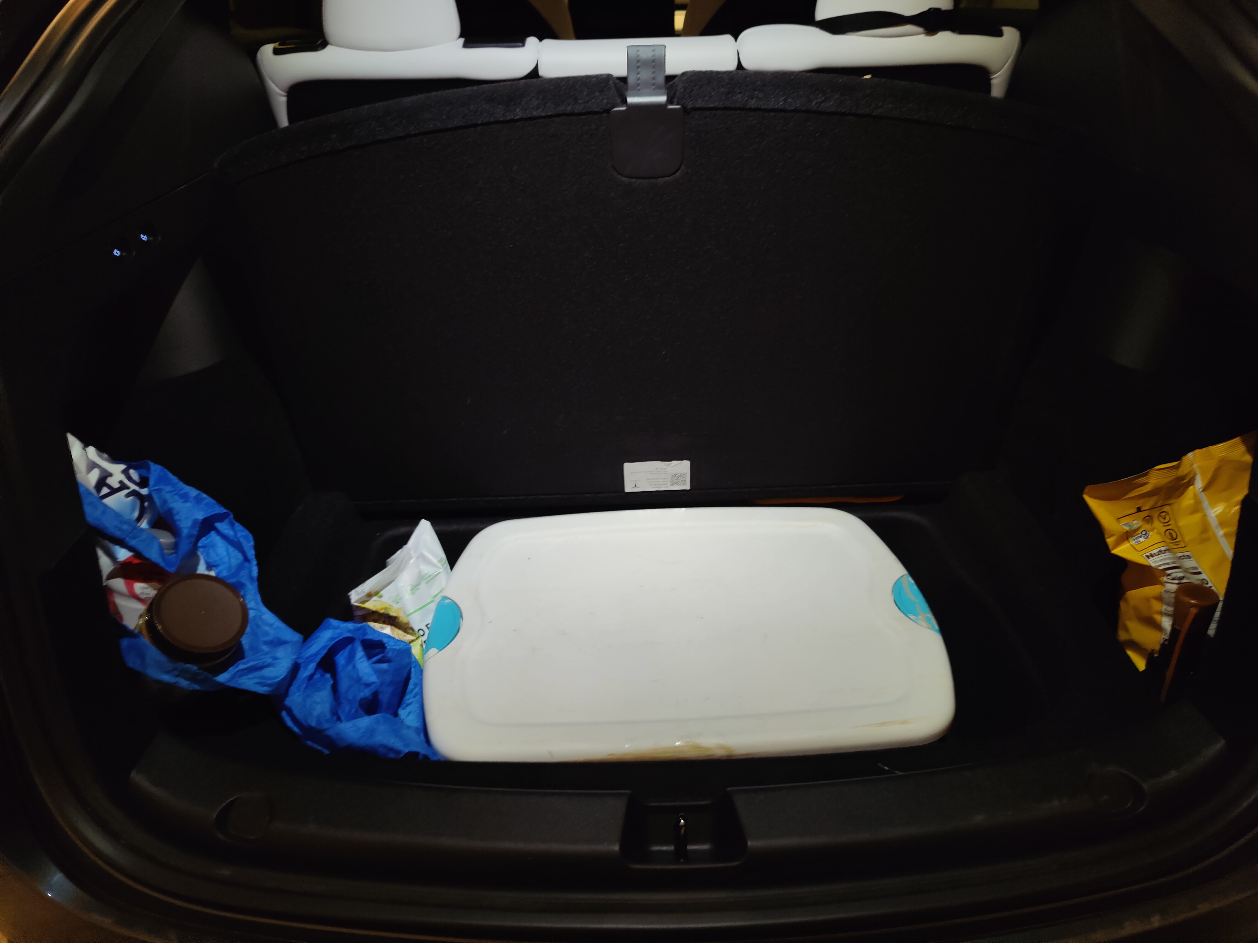 Pic 1, the frunk with most of the food, the rest of the pics, the back, has nice storage compartments where all the winter gear, Tesla charger, toiletries and a heavy duty extension cord, which I’ve never used, but still seems to feel like it’s a good idea.