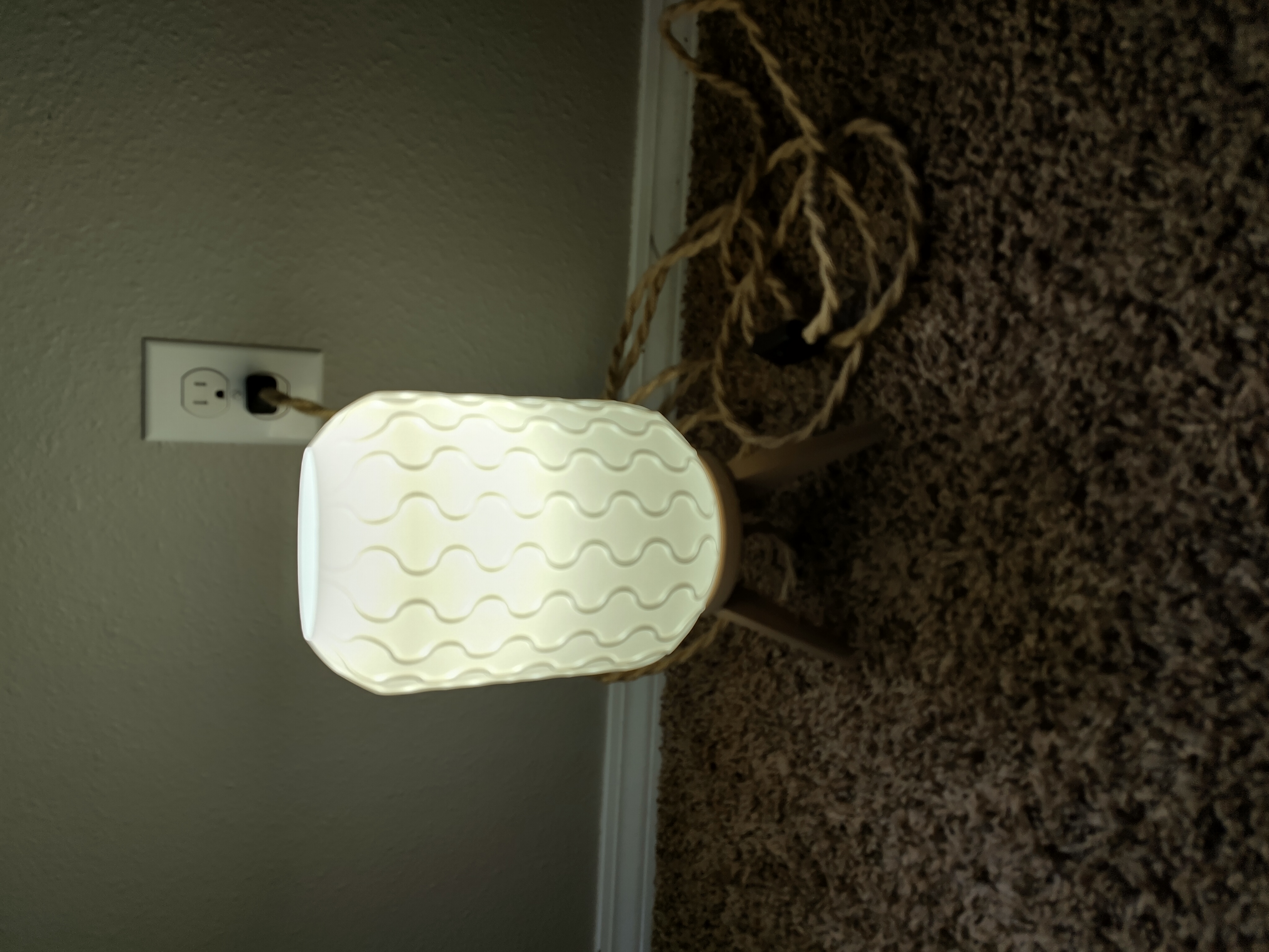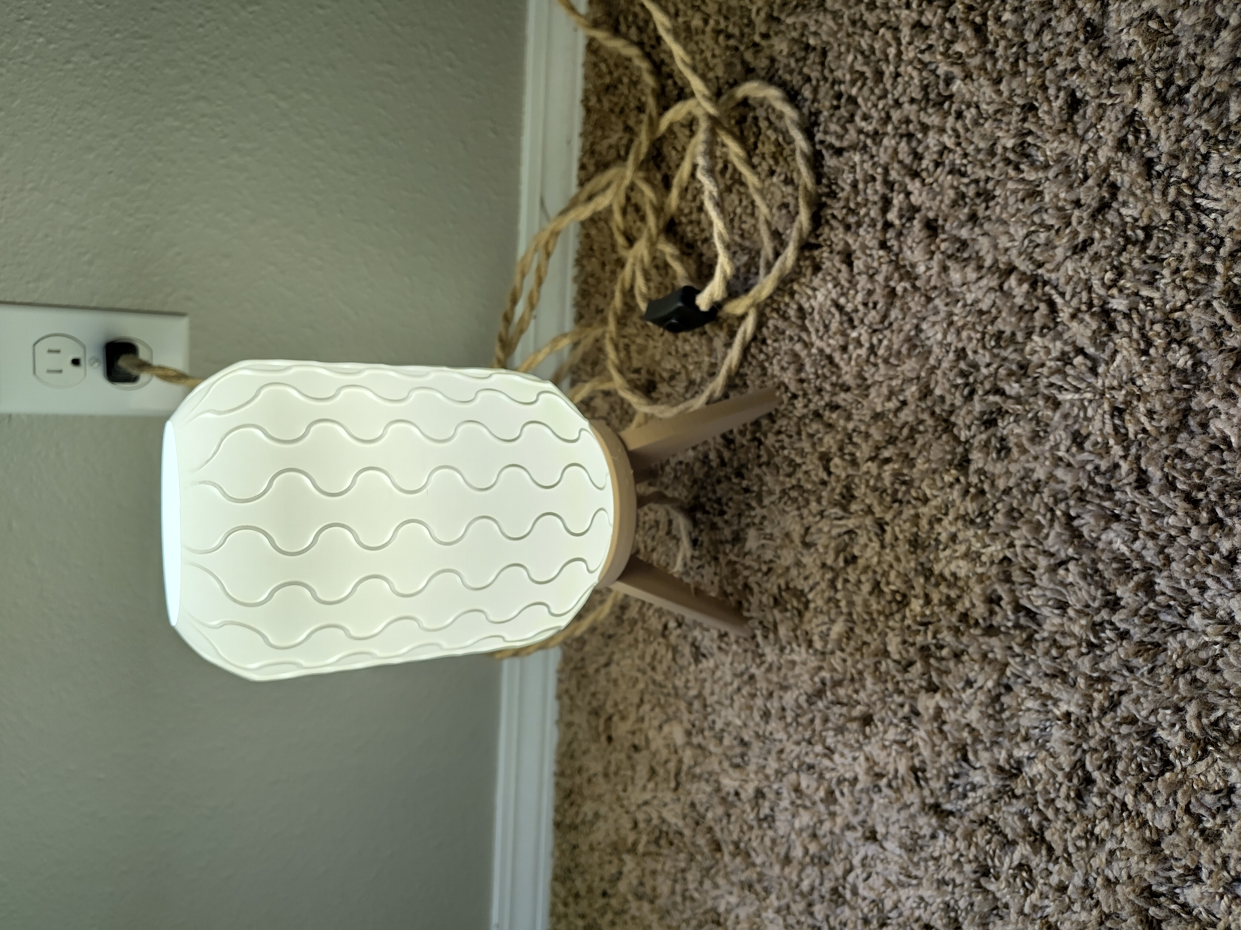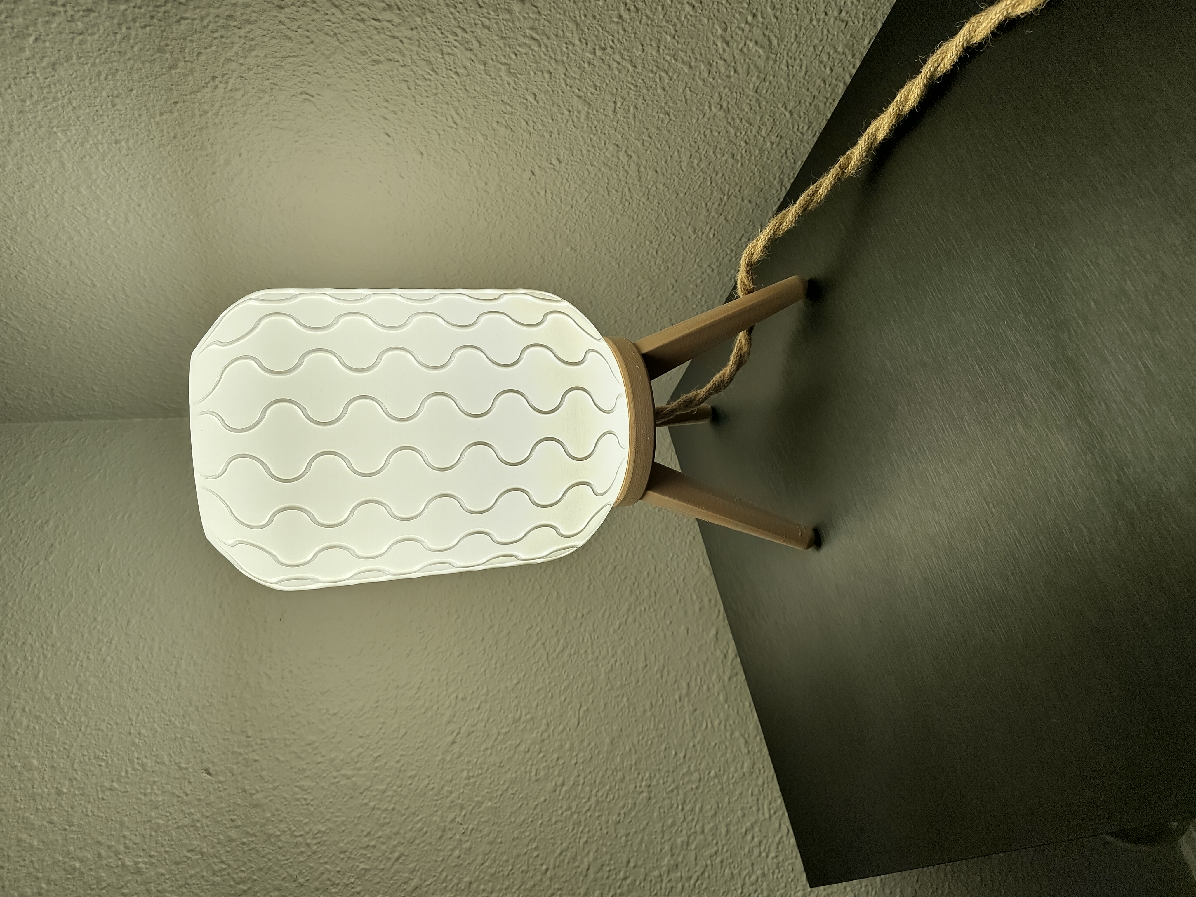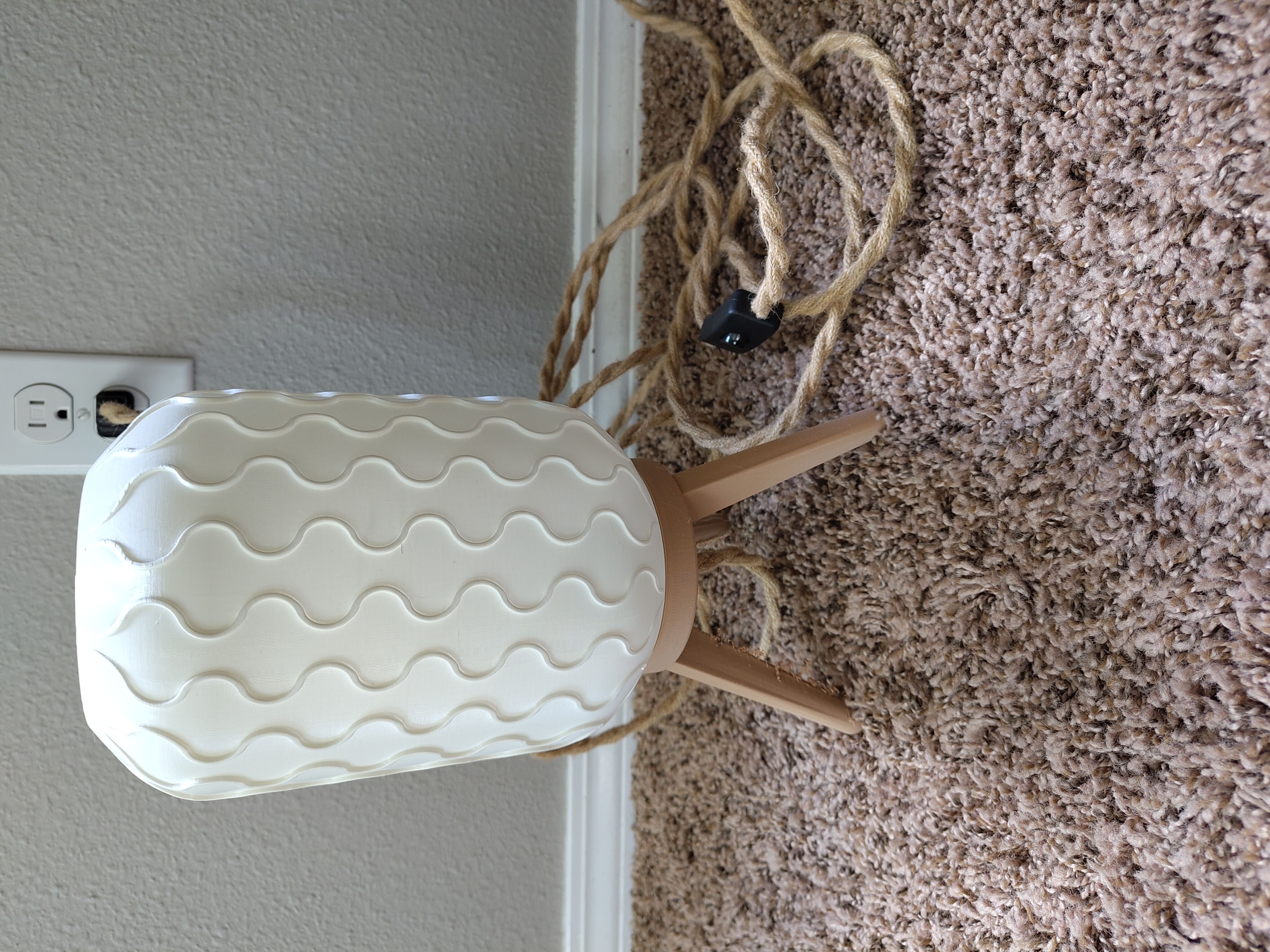 I paired the printed shade with a base made from 3D printed wood filament, keeping the tone organic and warm. The final touch was a natural rope cord purchased from your typical big box store, which gave the whole piece a grounded, coastal-modern vibe. My neighbors, who are remodeling one of their rooms Immedietly offered me money for it and now it sits in their freshly remodeled room, casting a soft glow and reminding me that trying something new is almost always worth it, even if the first few tries go sideways.