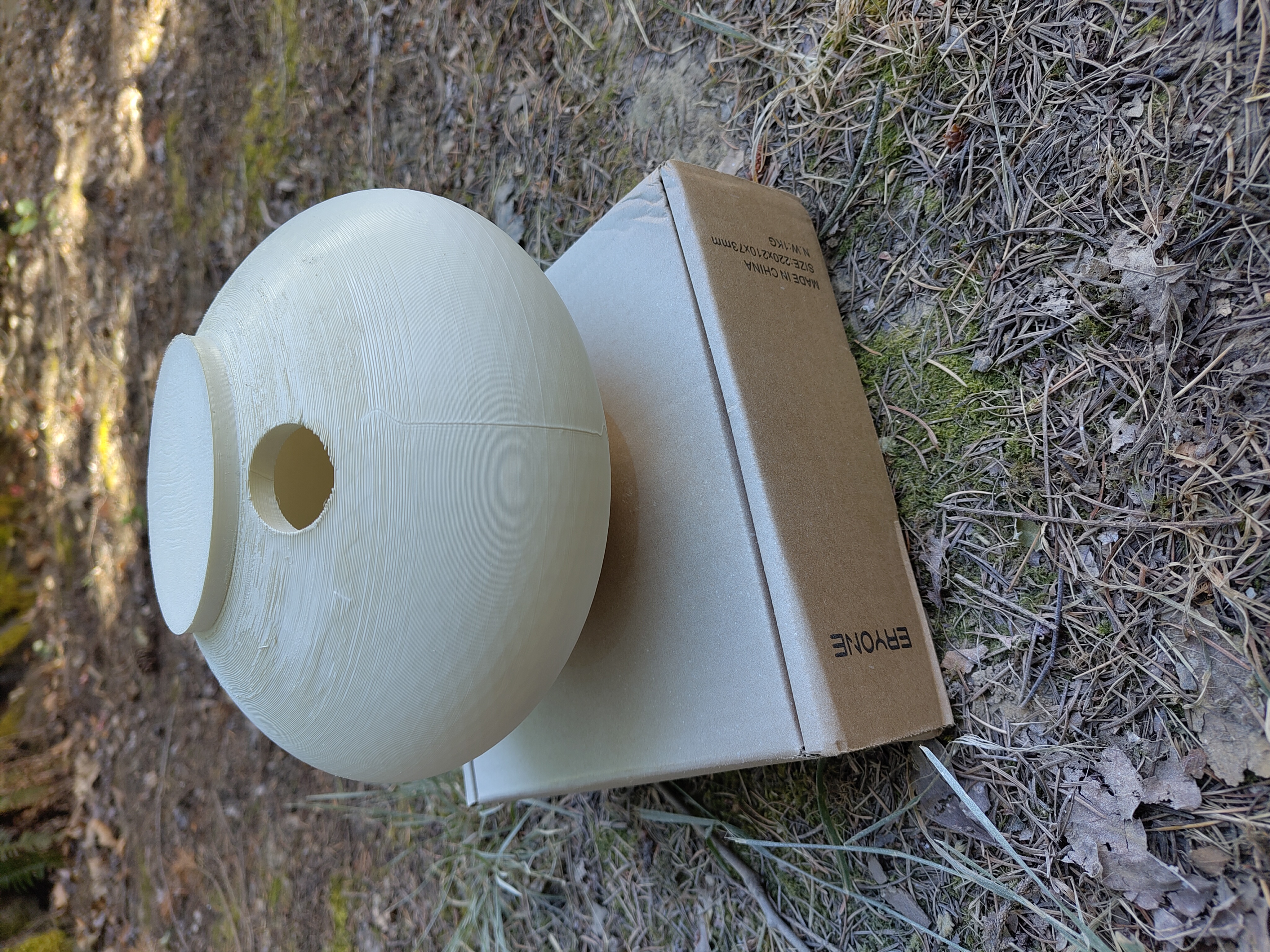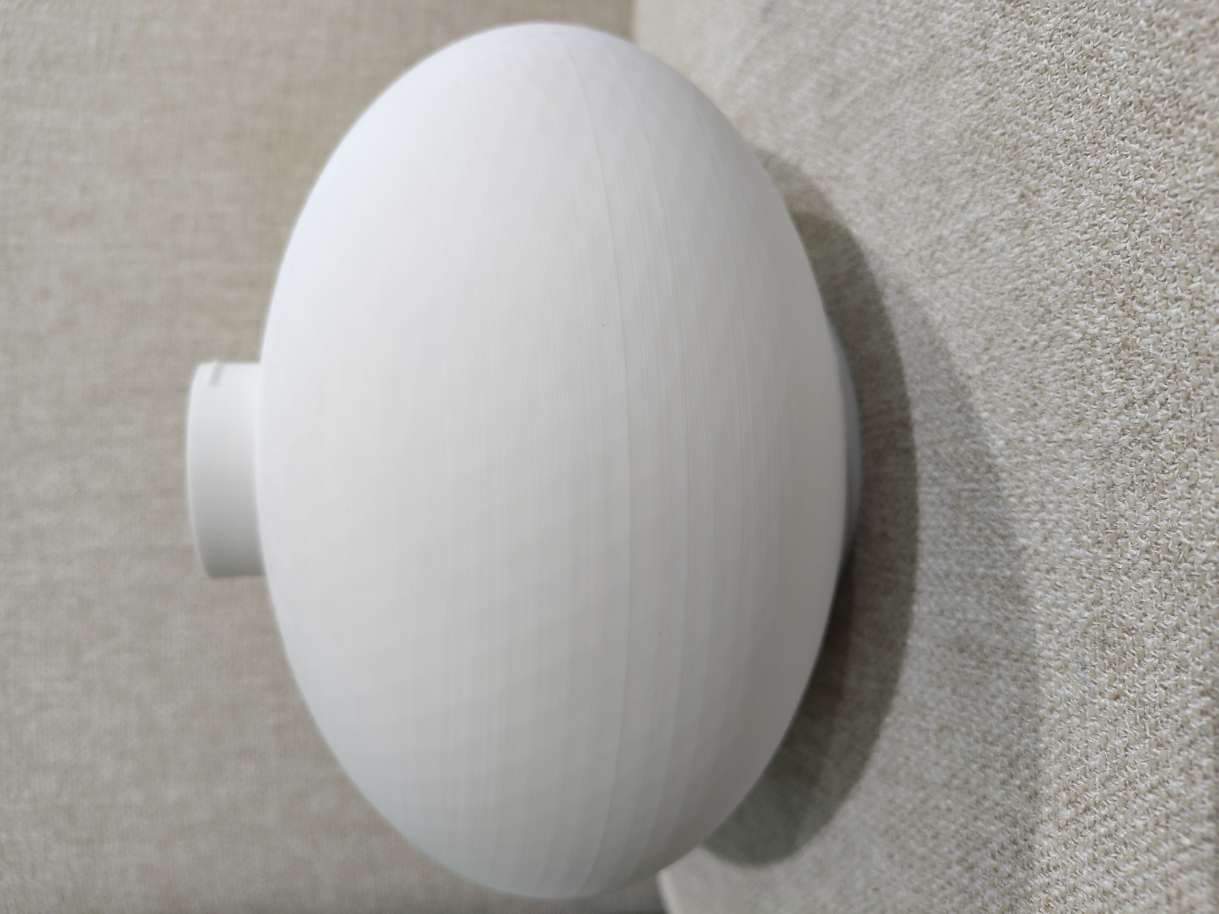 I made the shade using the slicer setting spiralize vase but with 4 bottom layers, .25mm high each, to give the mounting section enough strength. Not seen here, I also made a tiny spacer to give the shade enough surface area to mount onto the lamp shade bracket. Also not seen here, the sanding. So much sanding.s