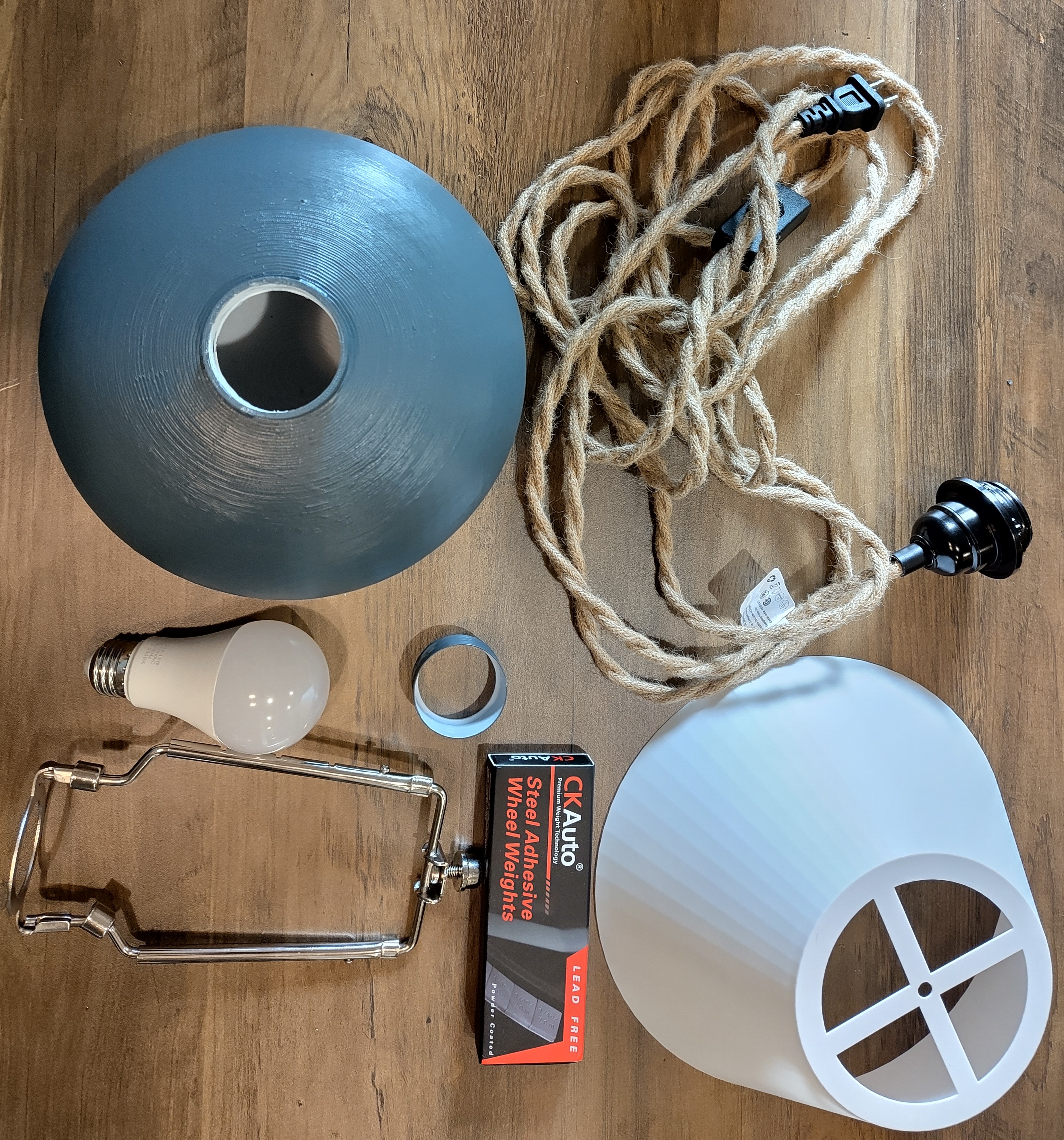 I played around with the lamp design a bit, trying to find that sweet spot between clean design and personal touch. This one came together unexpectedly well, though it was super light, kinda mid section heavy. I had some car wheel balancing weights left over from another project, so I designed a small section and added them to the base.